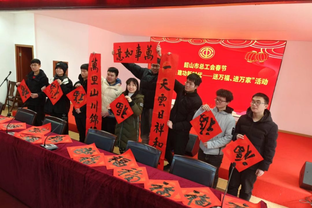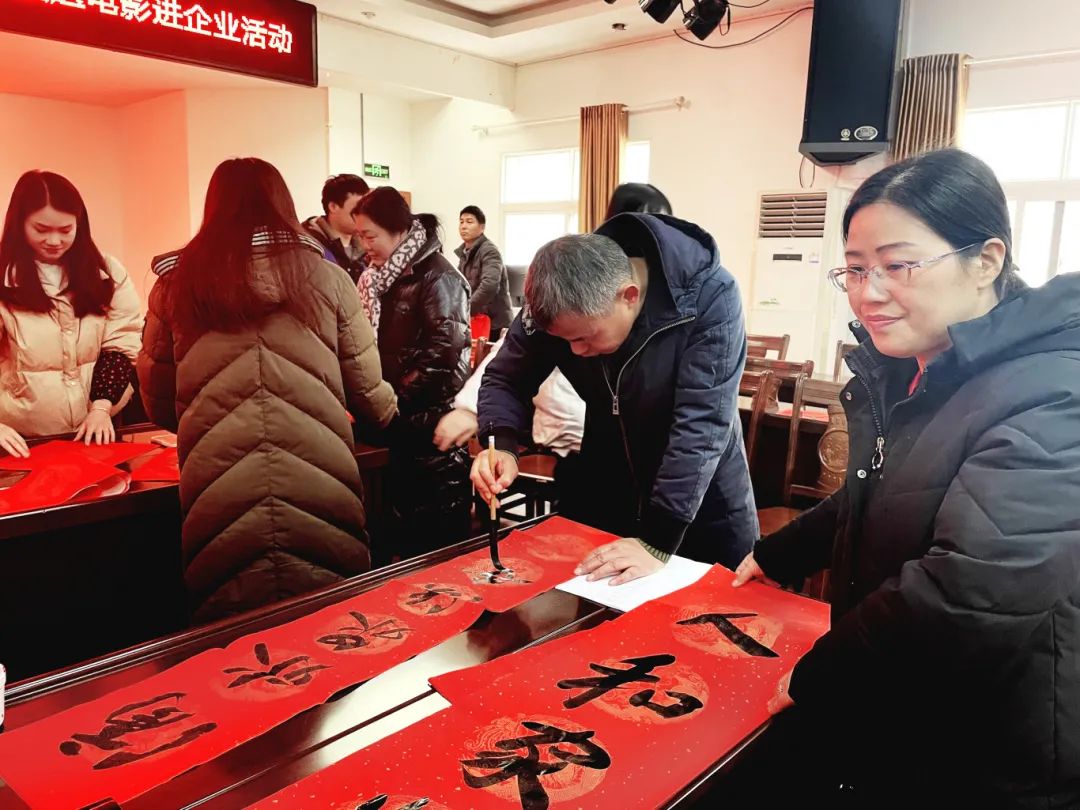 為深入學(xué)習(xí)宣傳貫徹黨的二十大精神,大力弘揚(yáng)中華傳統(tǒng)文化,豐富員工群眾精神文化生活,在新春來(lái)臨之際,1月26日,韶山市總工會(huì)組織韶山書(shū)法家協(xié)會(huì)書(shū)法家走進(jìn)【恒欣股份】開(kāi)展“送萬(wàn)福、進(jìn)萬(wàn)家“書(shū)法公益活動(dòng)及“傳承工運(yùn)精神 賡續(xù)紅色血脈”送電影活動(dòng),為【恒欣股份】員工送上新春”大禮包”。