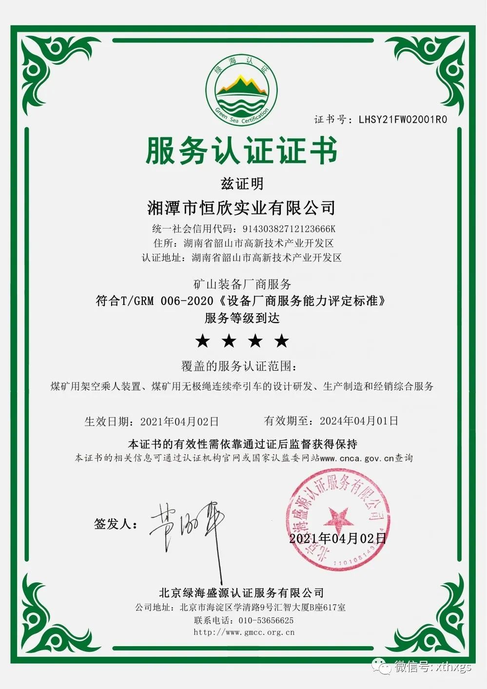 xiao12666@163.com【湘潭恒欣】被認(rèn)定為礦山裝備廠商服務(wù)四星級(jí)企業(yè)