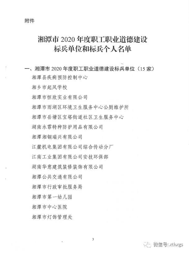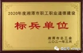 【湘潭恒欣】被授予2020年度湘潭市職工職業(yè)道德建設標兵單位