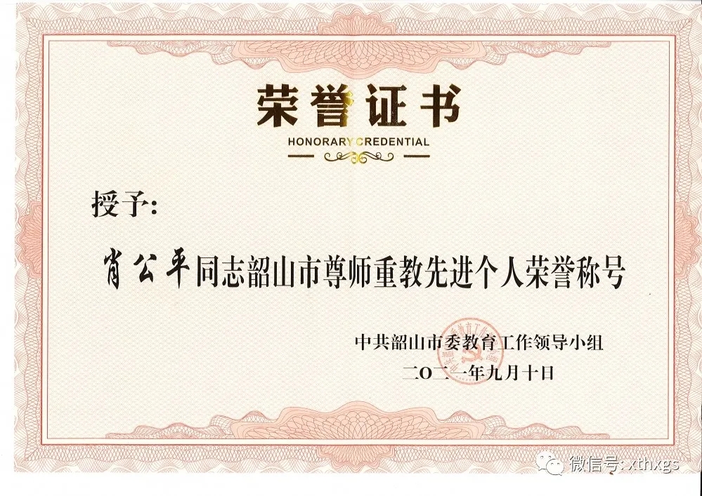 xiao12666@163.com【湘潭恒欣】董事長(zhǎng)肖公平榮獲【韶山市尊師重教先進(jìn)個(gè)人】榮譽(yù)稱號(hào)