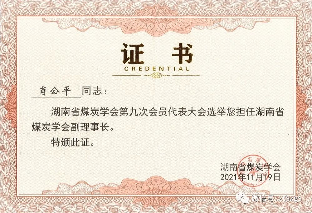 會議上【湘潭恒欣】董事長肖公平被選舉擔(dān)任湖南省煤炭學(xué)會副理事長。