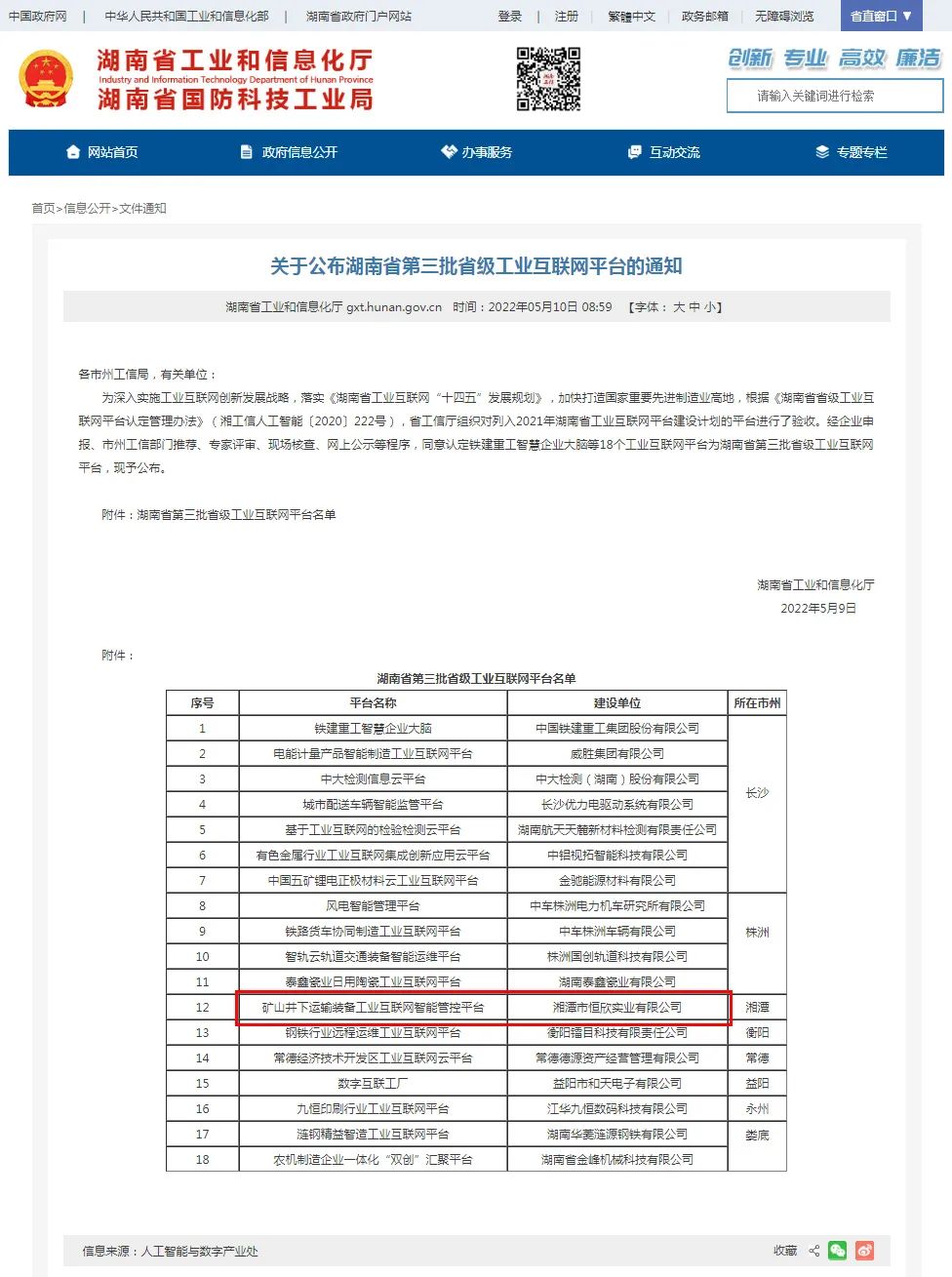 5月19日,省工信廳組織的省專精特新企業(yè)數(shù)字化轉(zhuǎn)型現(xiàn)場觀摩會議在長沙召開,會議上,【湘潭恒欣】總經(jīng)理肖連平代表公司接受了礦山井下運輸裝備工業(yè)互聯(lián)網(wǎng)智能管控平臺,被認定為湖南省工業(yè)互聯(lián)網(wǎng)平臺的授牌。