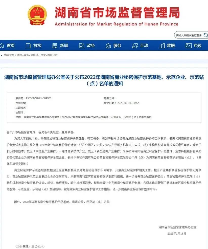xiao12666@163.com我司認(rèn)定為湖南省商業(yè)秘密保護(hù)示范企業(yè)