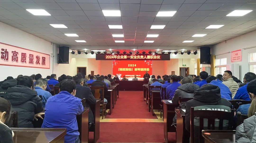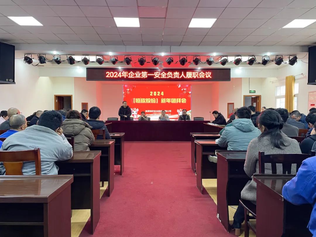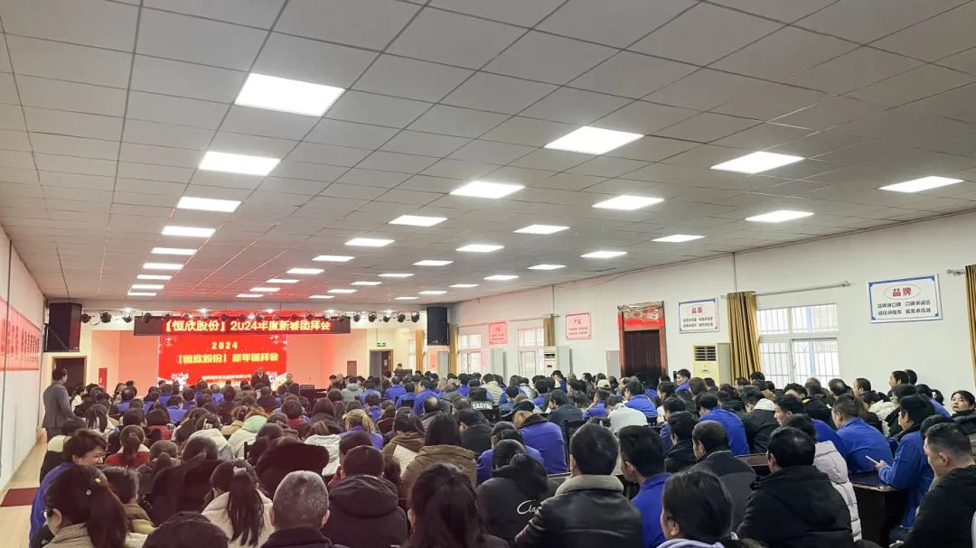 團拜會上,董事長肖公平致新春賀詞,向全體員工致以節(jié)日問候和美好祝福。肖董事長表示,回首過去2023年我們收獲了累累碩果,希望2024年新的征程,能夠收獲更美好的未來。在春節(jié)期間,為客戶保履約,依然堅守在崗位上的員工表示欽佩,他們肩扛責任擔當,解客戶之憂,排客戶之難,用拼搏與奉獻書寫新春最美“敬業(yè)?!保昝涝忈屃恕竞阈拦煞荨俊八钠肺幕?,并現(xiàn)場連線了出差的三名售后技術(shù)工程師吳工、左工、蘇端志師傅、熊恩泉師傅,分別為他們送去了新春的祝福和問候?!竞阈拦煞荨坎粩喟l(fā)展壯大離不開像他們一樣默默奉獻的廣大員工,對為【恒欣股份】建設發(fā)展作出貢獻的員工們表示衷心感謝。