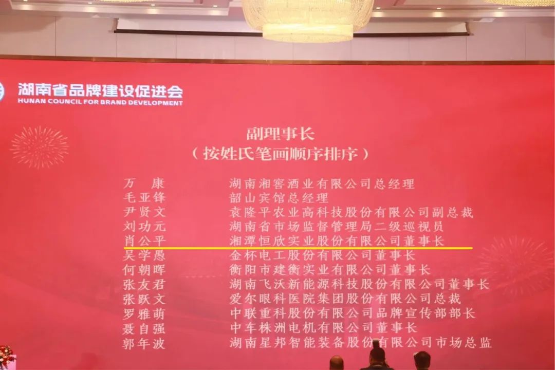 湖南省品牌建設(shè)促進(jìn)會(huì)成立大會(huì)暨第一次會(huì)員代表大會(huì)選舉產(chǎn)生了第一屆理事會(huì)輪值理事長、常務(wù)副理事長、副理事長、秘書長、法人代表和監(jiān)事會(huì)監(jiān)事長,組建了協(xié)會(huì)首屆工作班子。【恒欣股份】董事長肖公平當(dāng)選湖南省品牌建設(shè)促進(jìn)會(huì)副理事長,【恒欣股份】當(dāng)選副理事長單位,并是本大會(huì)成立的發(fā)起單位之一。
