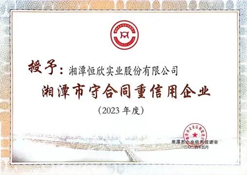 近期,【恒欣股份】先后被評(píng)為“2023年度湖南省守合同重信用企業(yè)”和“2023年度湘潭市守合同重信用企業(yè)”,【恒欣股份】已連續(xù)十一年獲得該榮譽(yù),成為行業(yè)誠信經(jīng)營的典范。