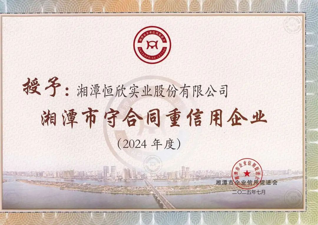 喜訊!【恒欣股份】近日成功獲評(píng)“2024年度湖南省守合同重信用企業(yè)”和“2024年度湘潭市守合同重信用企業(yè)”!這是公司連續(xù)第十二年榮獲此項(xiàng)殊榮。