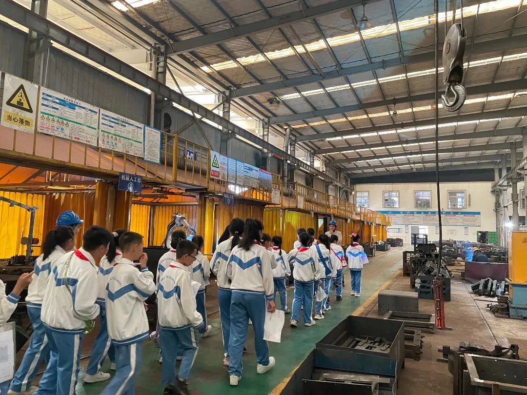 在段總監(jiān)的陪同下,師生們依次參觀了企業(yè)榮譽展廳、數(shù)控車間、焊接機器人作業(yè)區(qū)、單軌吊無人駕駛區(qū)及物聯(lián)網(wǎng)中心,段總監(jiān)全程耐心講解,讓孩子們近距離觀察核心產(chǎn)品的生產(chǎn)過程,在焊接機器人工作區(qū),智能機械臂的精準(zhǔn)焊接令孩子們驚嘆不已;在單軌吊實驗區(qū),工作人員現(xiàn)場演示無人駕駛技術(shù),讓孩子們直觀感受到科技的力量。