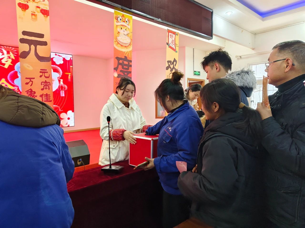 活動現(xiàn)場洋溢著濃厚的節(jié)日氛圍,一排排紅彤彤的燈籠與500多條燈謎卡片交相輝映,內(nèi)容涵蓋成語、地名、生活常識等多個領域,兼具趣味性與知識性。員工們或駐足凝思,或熱烈討論,歡聲笑語此起彼伏?;顒舆€設置了現(xiàn)金紅包和豐富的獎品,猜中謎題者不僅收獲禮品,更有機會參與抽獎環(huán)節(jié),將現(xiàn)場氣氛推向高潮。