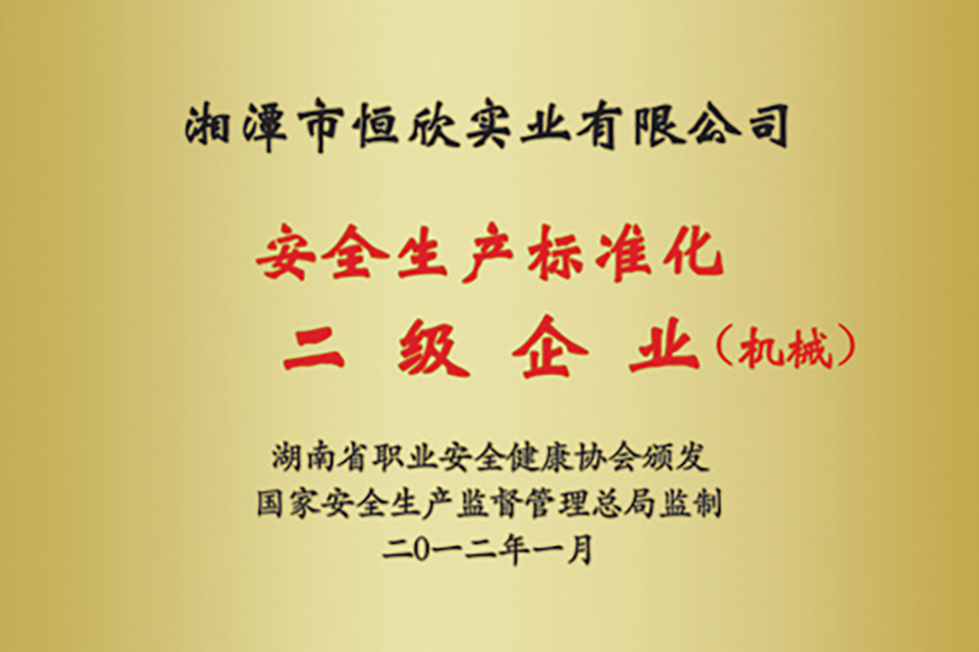 xiao12666@163.com熱烈慶祝“湘潭恒欣”被評(píng)為湖南省安全生產(chǎn)標(biāo)準(zhǔn)化二級(jí)達(dá)標(biāo)企業(yè)