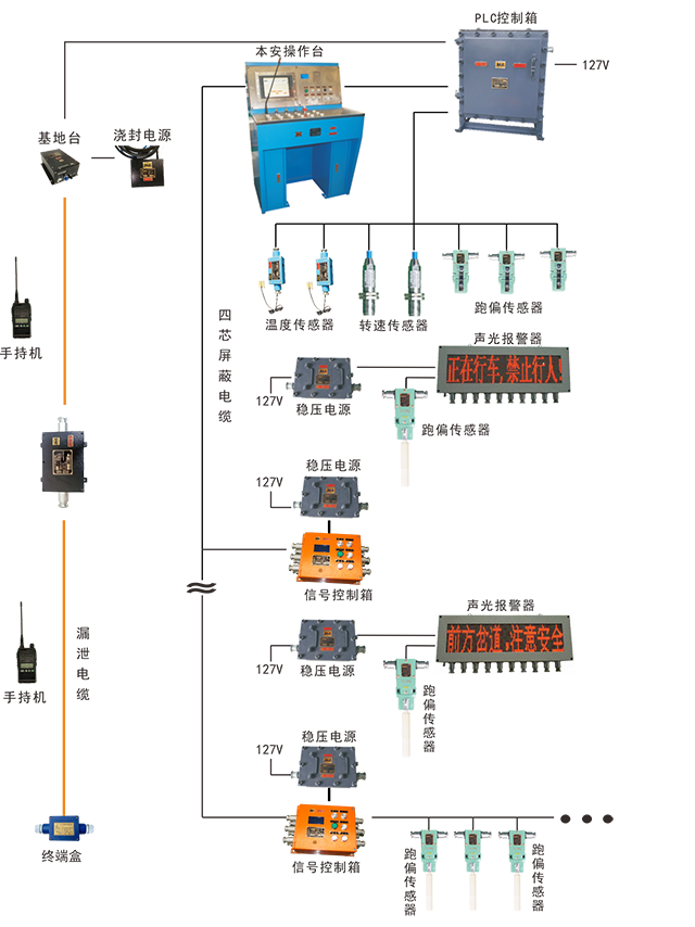 可外接漏泄通訊系統(tǒng),實(shí)現(xiàn)跟車員隨時(shí)與無極繩絞車操作員進(jìn)行通話交流、打點(diǎn)、緊急停止無極繩絞車運(yùn)行等功能。