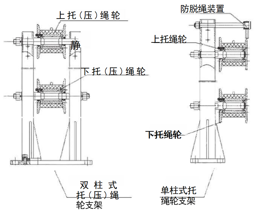 無極繩絞車帶動鋼絲繩無極循環(huán)運行,行人將卡繩棒卡住上山運行的鋼絲繩,并由上山運行的鋼絲繩將人拖動向上助力上坡,從而減輕礦工斜井上坡時的體力消耗,但下坡時禁止使用助行器。