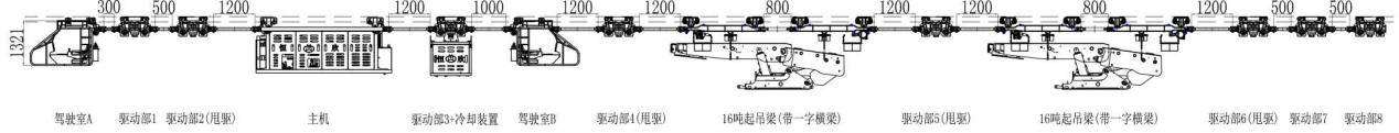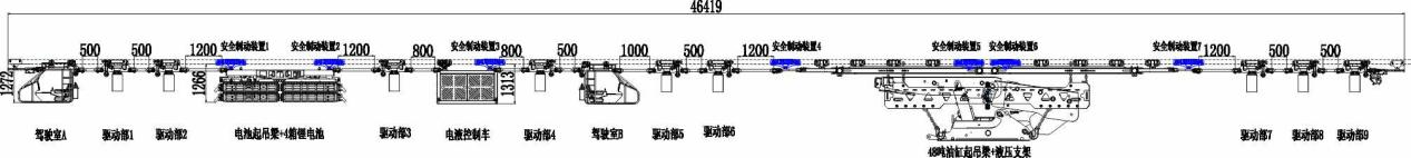 方式二:起吊梁位于最前端位置,適用于直接將液壓支架運輸?shù)焦ぷ髅媲醒畚恢眠\輸方式,采用葫蘆驅動形式起吊梁,也可拆解為小噸位起吊梁,用于運輸平板車、礦車等小型貨物。