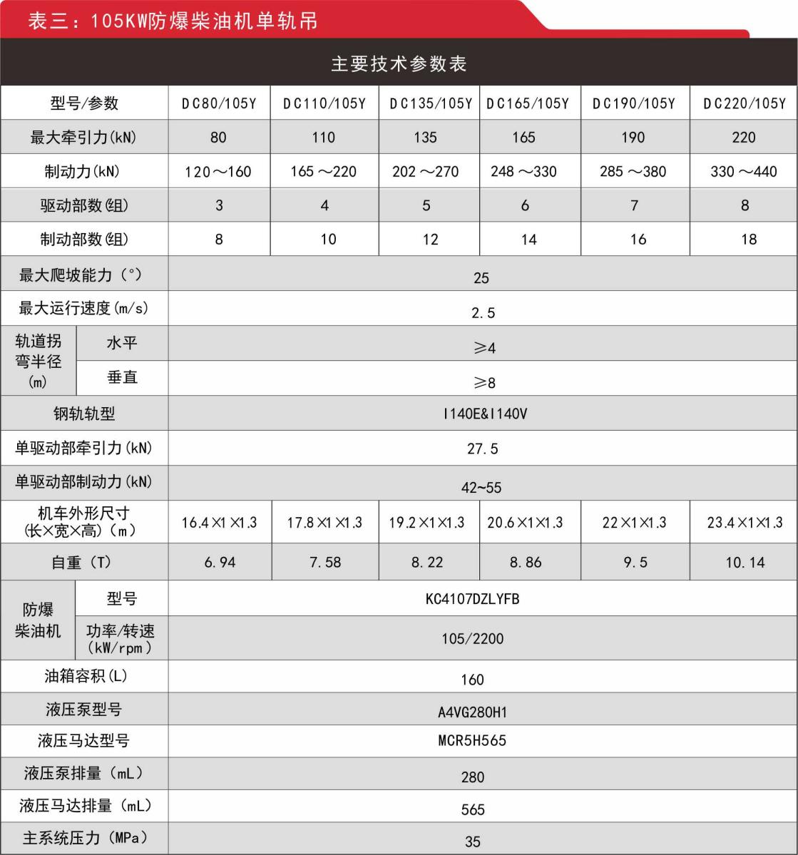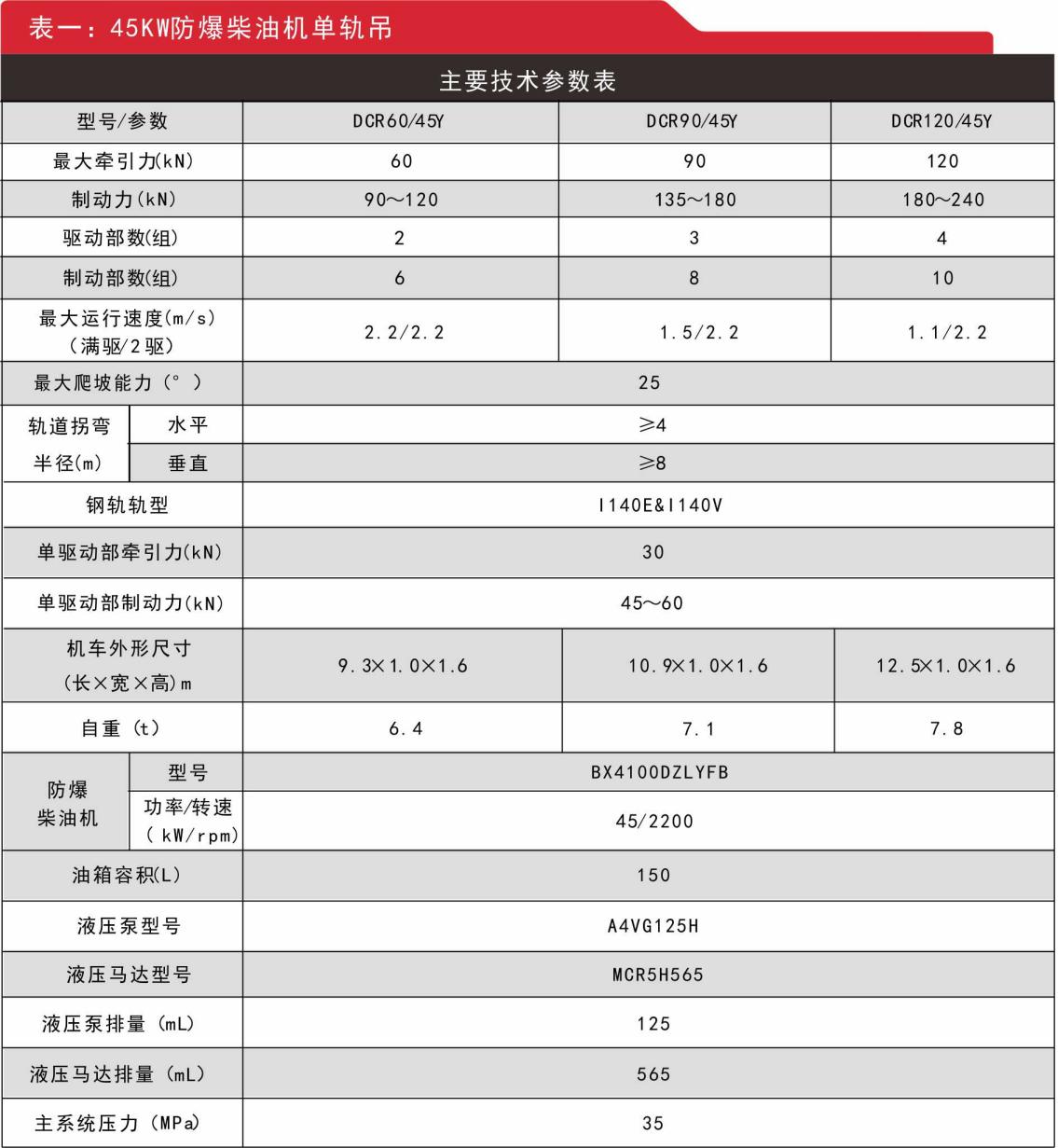 1.防爆柴油機(jī)單軌吊技術(shù)參數(shù)