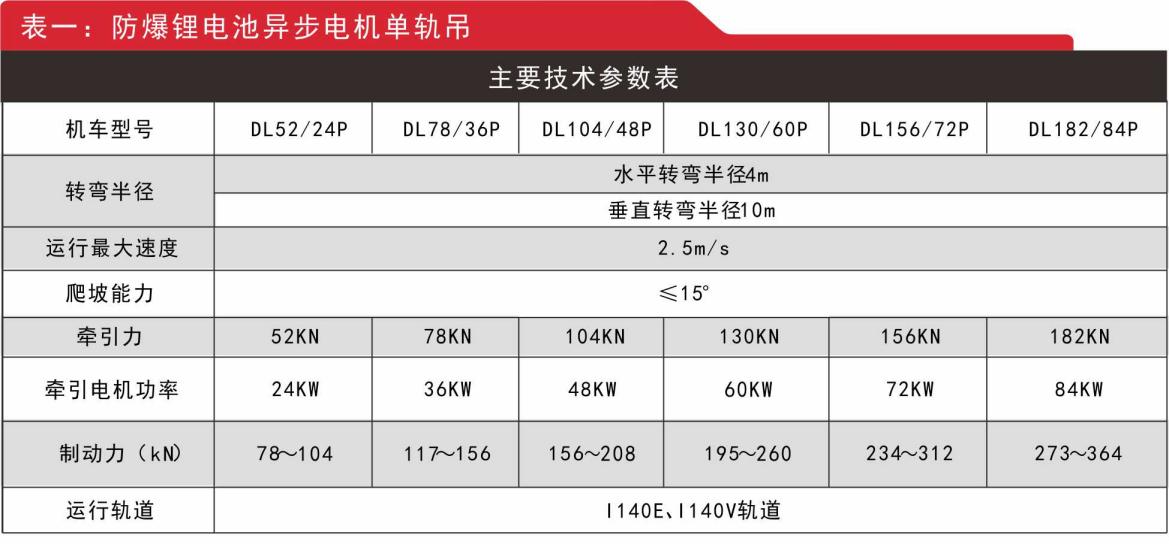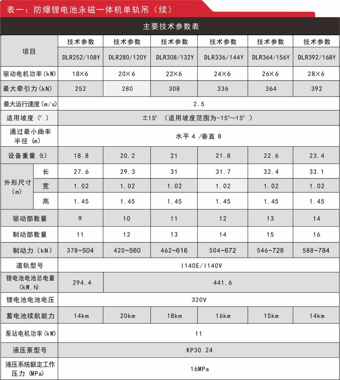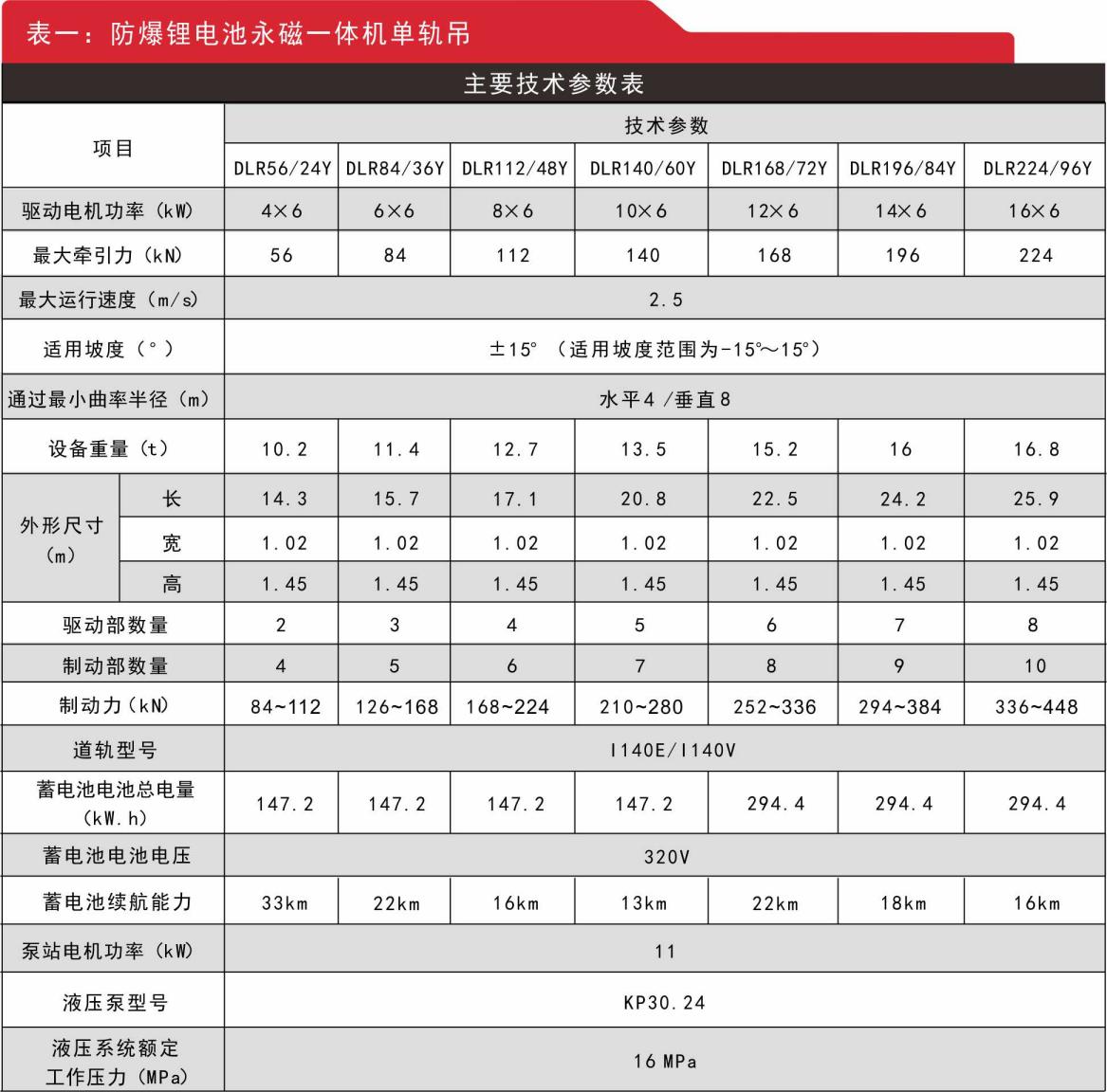 六、防爆鋰電池永磁一體機(jī)單軌吊技術(shù)參數(shù)