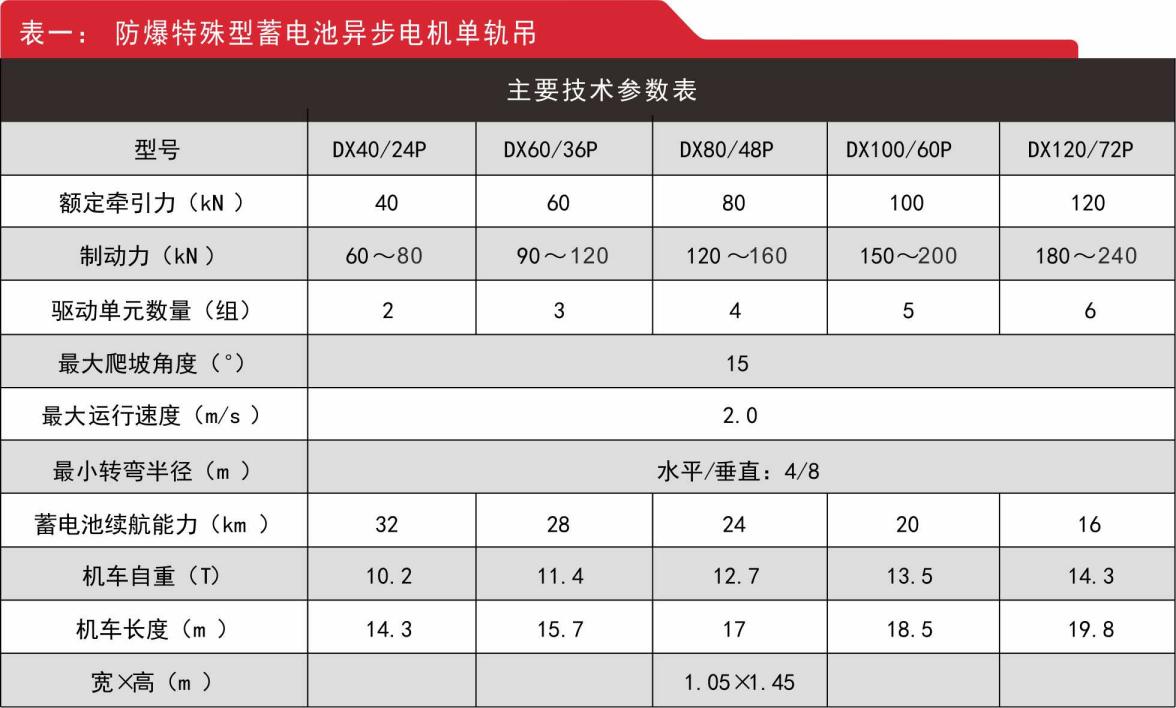 五、防爆特殊型蓄電池單軌吊技術(shù)參數(shù)