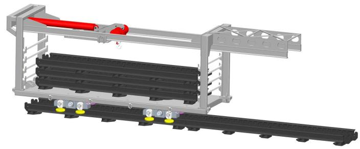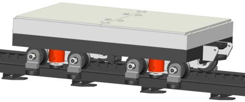 在每個(gè)驅(qū)動(dòng)部卡軌裝置設(shè)計(jì)對軌道制動(dòng)裝置 ,用于機(jī)車上坡溜車和機(jī)車下坡飛車時(shí)的緊急制動(dòng) 。制動(dòng)力滿足牽引力1.5~2.0倍要求 ,對軌制動(dòng)器的制動(dòng)力直接作用在兩側(cè)軌道上,制動(dòng)停車安全可靠。