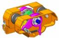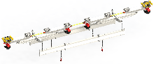 單軌吊速度保護小車設(shè)有離心限速裝置和編碼器測速裝置,安裝在電液車和柴油機車主機上方。可用于單軌吊承載、行走及導向,當機車運行速度超過設(shè)計最大運行速度的15%時,控制機車緊急制動。
