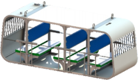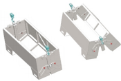 物料箱包含吊裝結(jié)構(gòu)和箱體。箱體容積可根據(jù)礦方需求定制,用于裝載描桿、矸石等小型貨物。物料箱分為底卸式結(jié)構(gòu)和側(cè)翻式結(jié)構(gòu),當運輸?shù)街付ㄎ恢脮r,物料箱下方封板或側(cè)面可以打開,將貨物落下,從而大大減少貨物的裝卸時間。