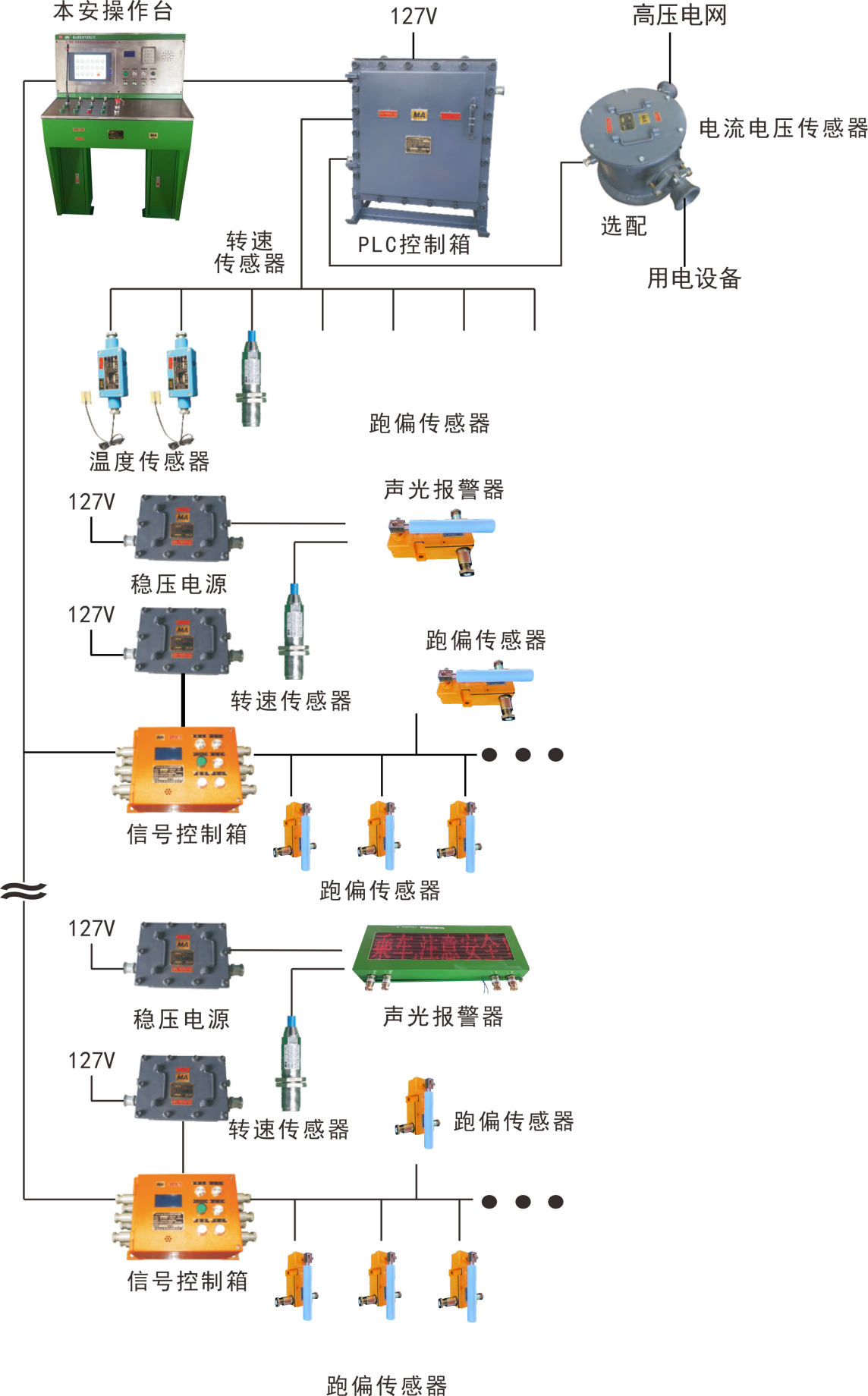 ZJK127(B)礦用無(wú)極繩絞車控制裝置適用于煤礦井下無(wú)極繩絞車運(yùn)輸?shù)谋Wo(hù)和控制,采用進(jìn)口PLC可編程控器與CAN總線通訊,既節(jié)省了煩瑣的控制線路,又能更準(zhǔn)確、安全及快捷地控制設(shè)備的運(yùn)行與停止;制動(dòng)油壓和油箱溫度及減速機(jī)溫度的檢測(cè),有效地對(duì)無(wú)極繩連續(xù)牽引車起主要作用的液壓站與減速機(jī)進(jìn)行監(jiān)控,維護(hù)系統(tǒng)更安全運(yùn)行。